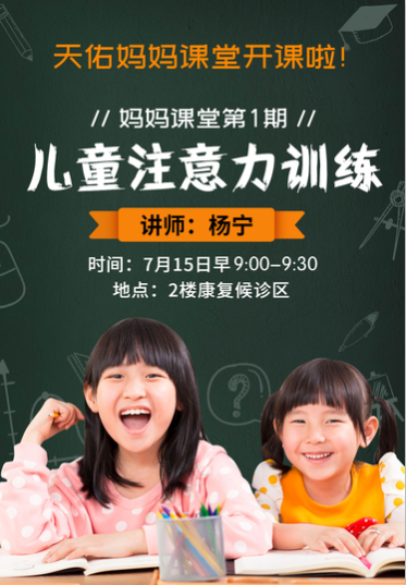 据悉,天佑儿童医院天佑学校妈妈课堂每周一、三、五上午9点开课,课程涉及《注意力及言语训练》、《孩子怪异行为怎么办》、《让每个家长成为干预高手》、《如何训练孩子目光对视》、《怎样让孩子大声说话》等等。